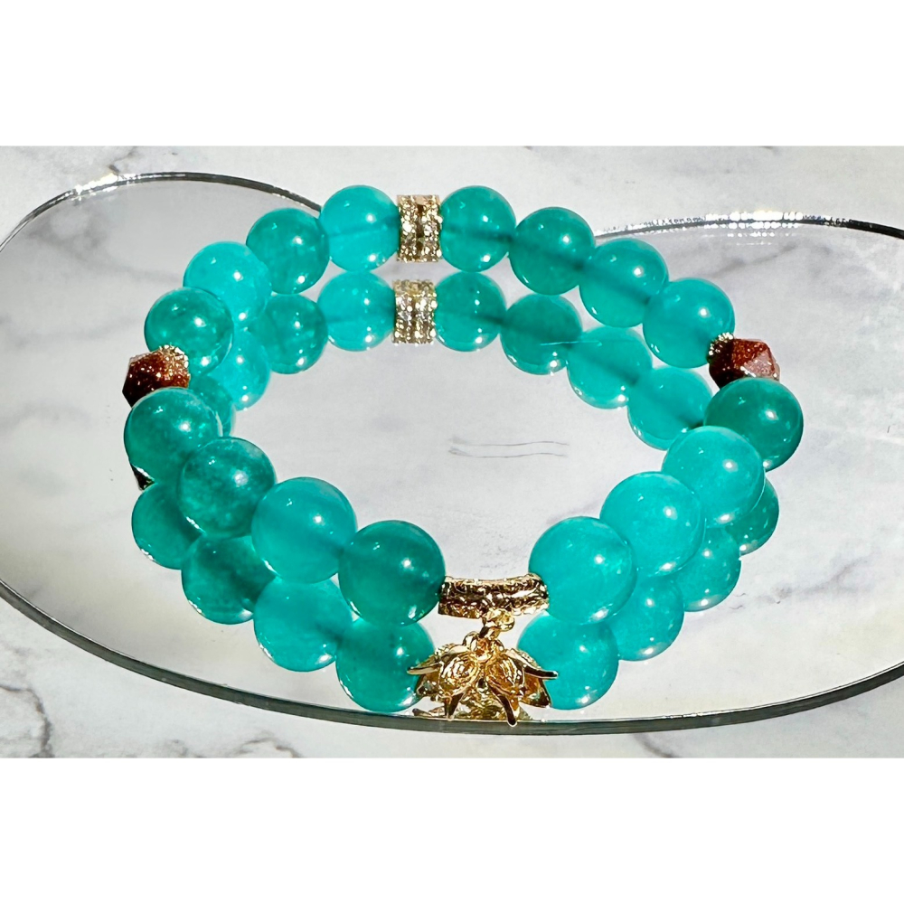 天河石與金沙石的搭配,形成了一個**「積極進取、財運亨通」**的組合: