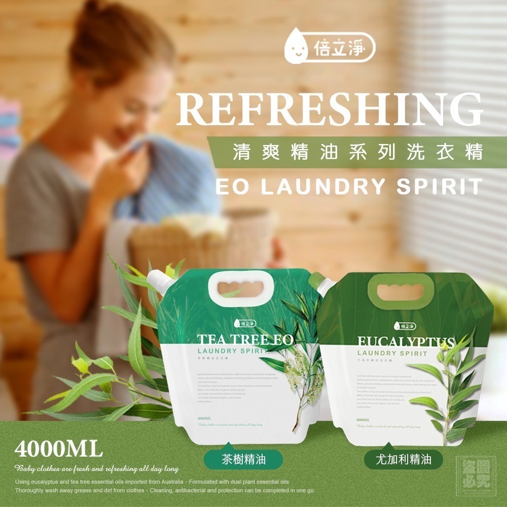 (免運)倍力淨-澳洲尤加利/茶樹精油系列洗衣精補充包4L(可混)(4帶/箱)