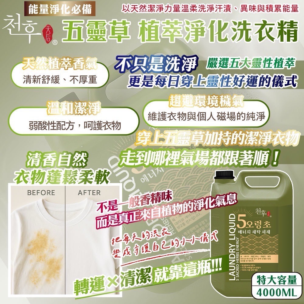 天后-五靈草植萃淨化洗衣精4000ml(5罐/箱)