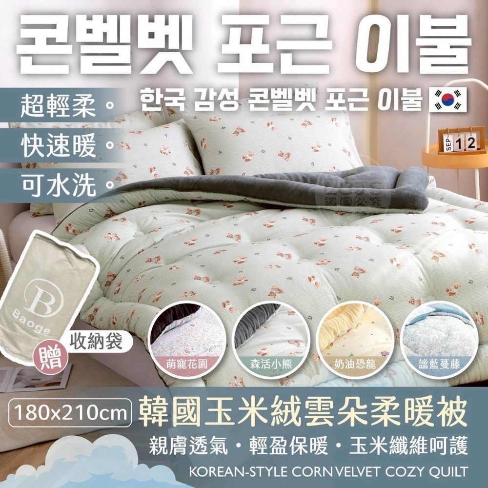 韓國玉米絨被180*210CM±5CM(加贈收納袋)雙人被