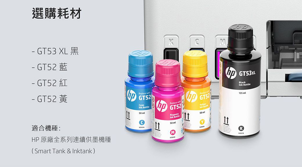 ※使用原廠墨水型號:GT53XL/GT52