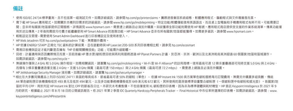 • 行動列印功能:HP Smart、Apple AirPrin、Wi-Fi Direct