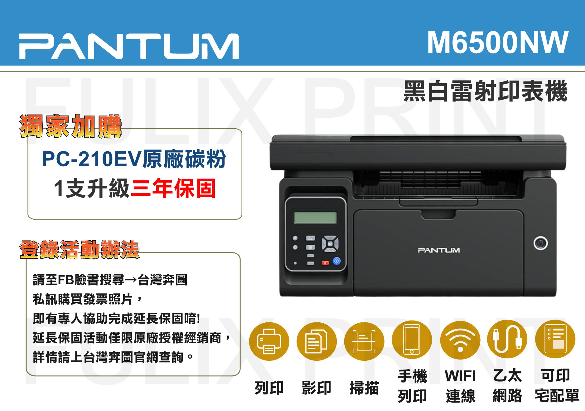PANTUM 奔圖 M6500N M6500NW 黑白雷射印表機【含原廠碳粉匣】
