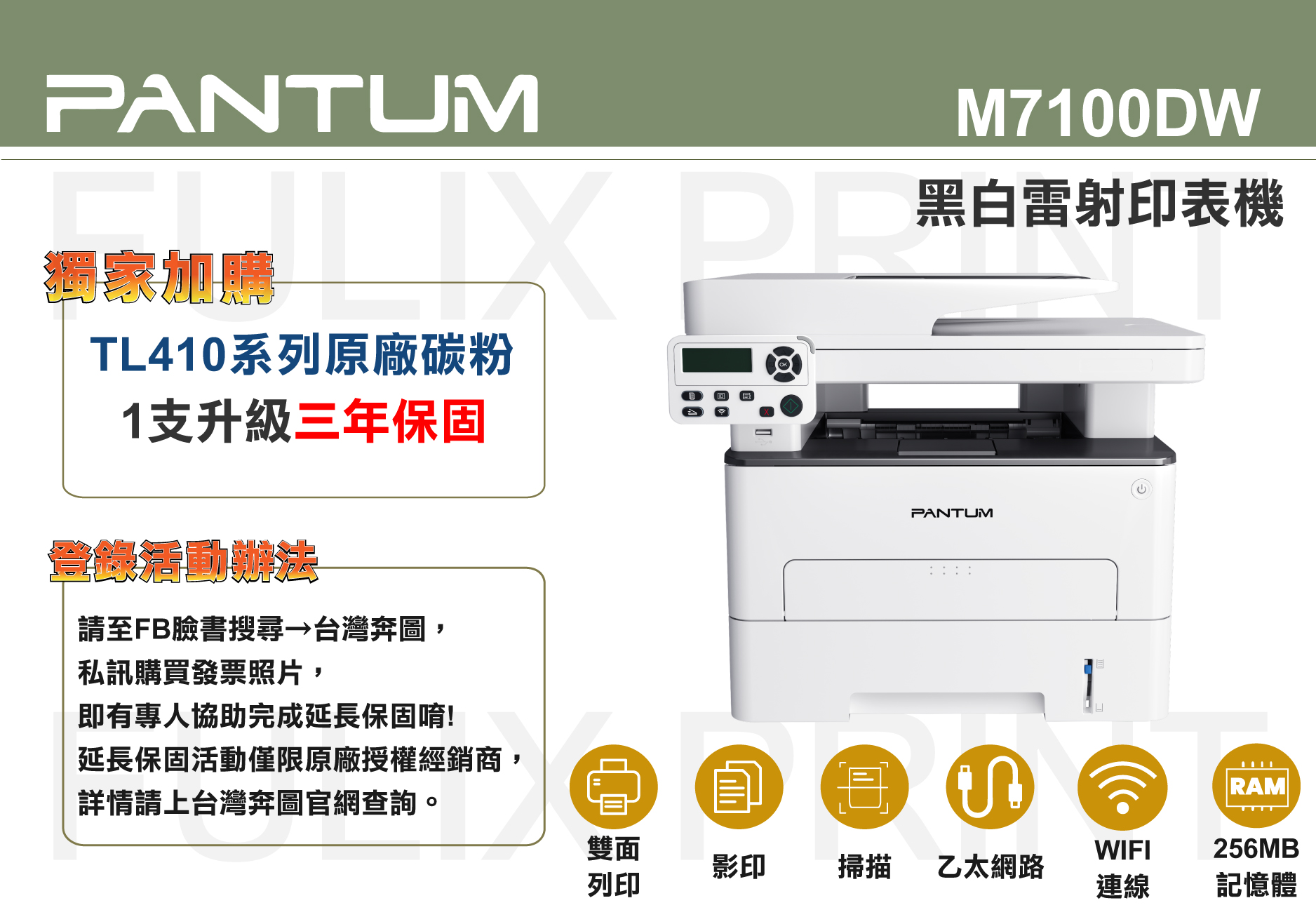 Pantum 奔圖 M7100DW 雙面黑白雷射多功能印表機
