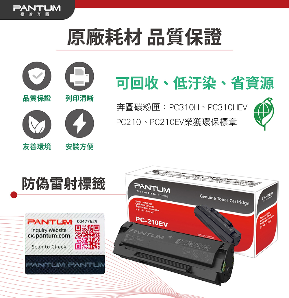 PANTUM 奔圖 PC-210EV 原廠彩盒碳粉匣