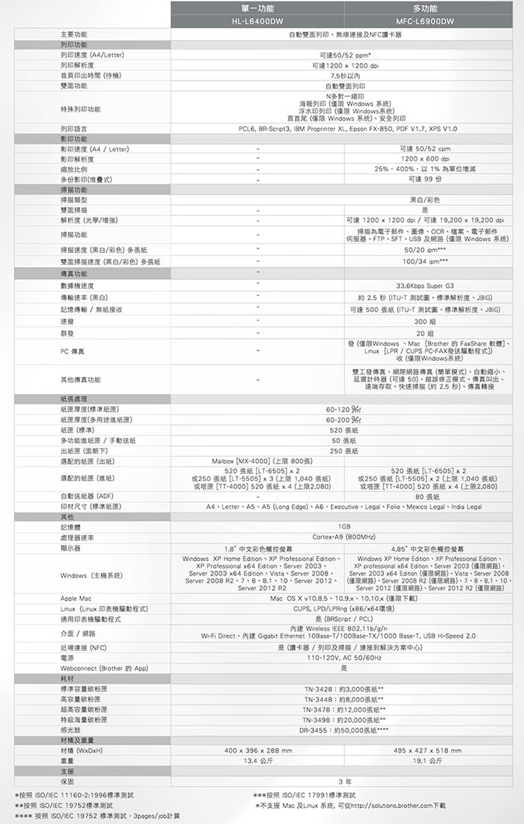 雙面列印|雙面影印|雙面掃描|雙面傳真|有線+無線網路|USB列印
