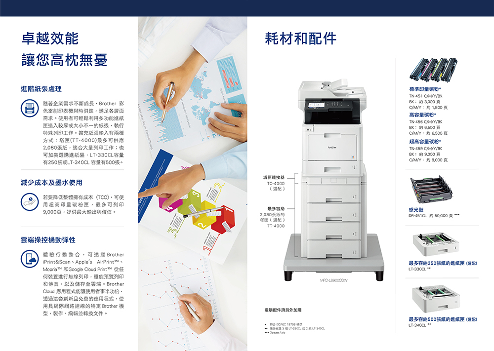 TN-451【A4紙張5%覆蓋率 黑3000張/彩1800張】/ TN-456【A4紙張5%覆蓋率 黑6500張/彩6500張】/ TN-459【A4紙張5%覆蓋率 黑9000張/彩9000張】