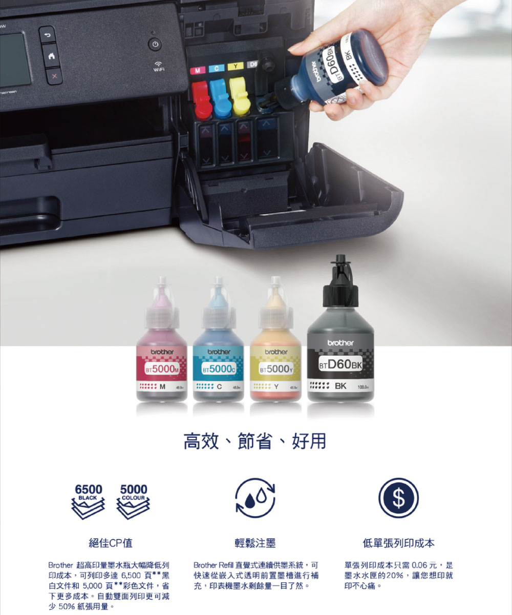 ※原廠墨水型號:黑 BTD60BK + 彩 BT5000C/M/Y