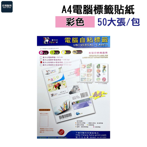 *A4電腦自粘標籤---貼紙 <彩色/含切割/可列印>