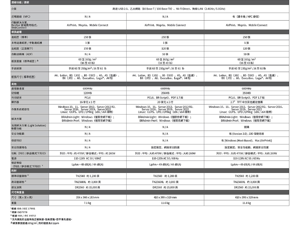 ※ 使用碳粉匣型號:TN-2560 / TN-2560XL