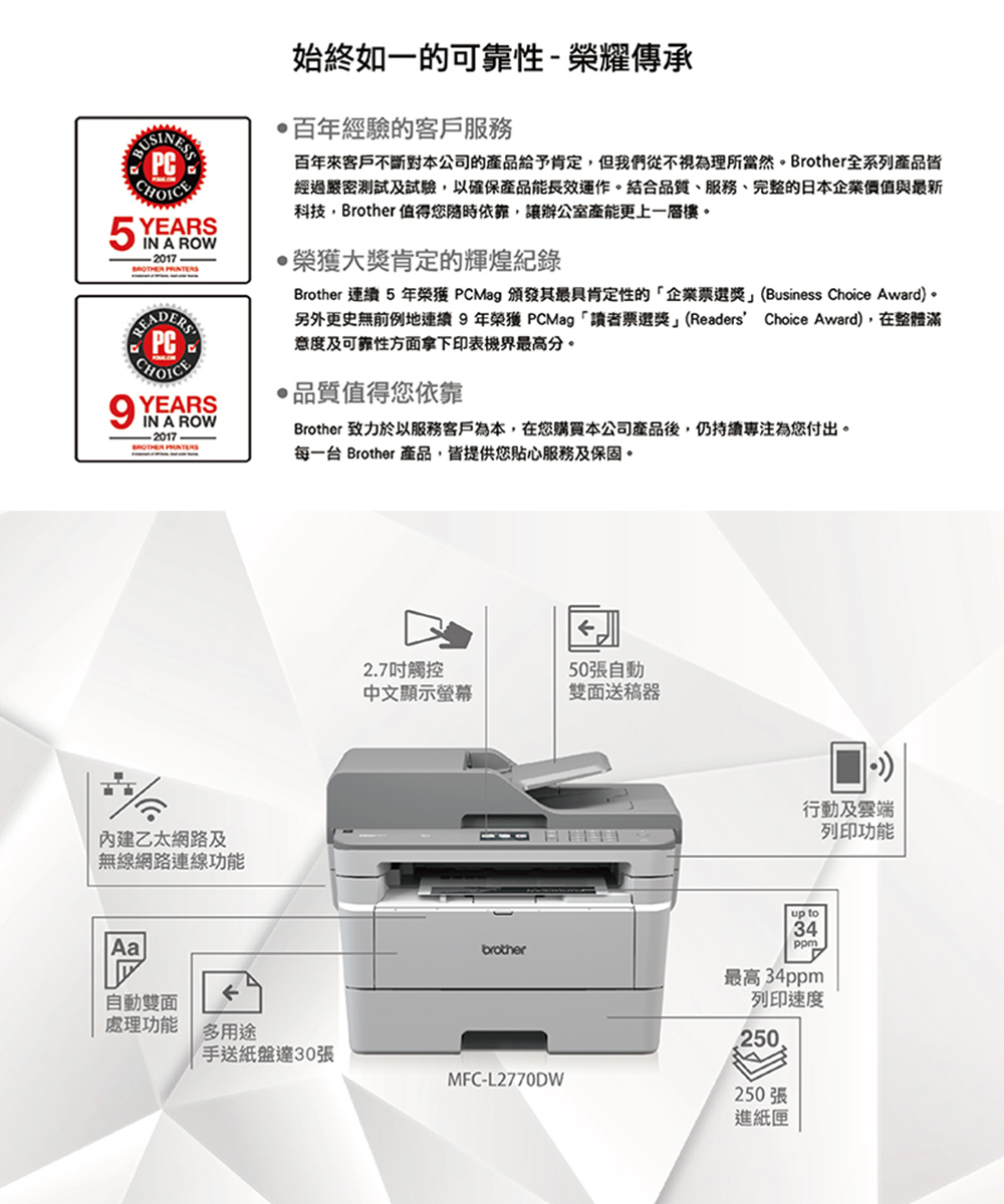 ●特點:自動雙面列印、省碳模式、250頁防塵進紙匣、列印速度高達每分鐘34頁、