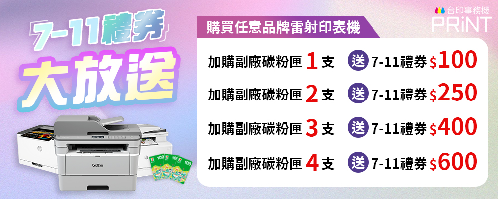 以下活動為【機器】搭【副廠碳粉匣】的活動,單買碳粉不適用