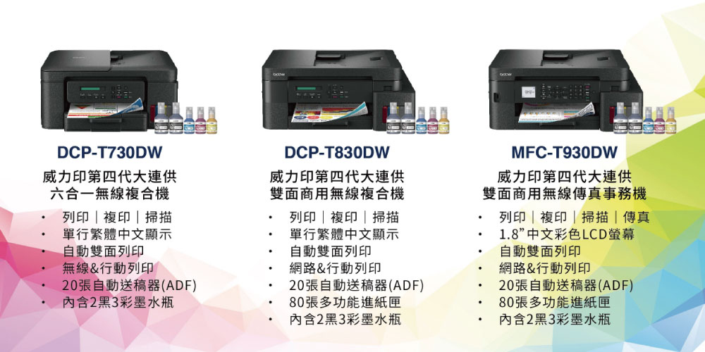※ 原廠墨水型號:黑 BTD100BK(寫真墨水 / 不防水)+ 彩 BT100C / M / Y(寫真墨水 / 不防水)