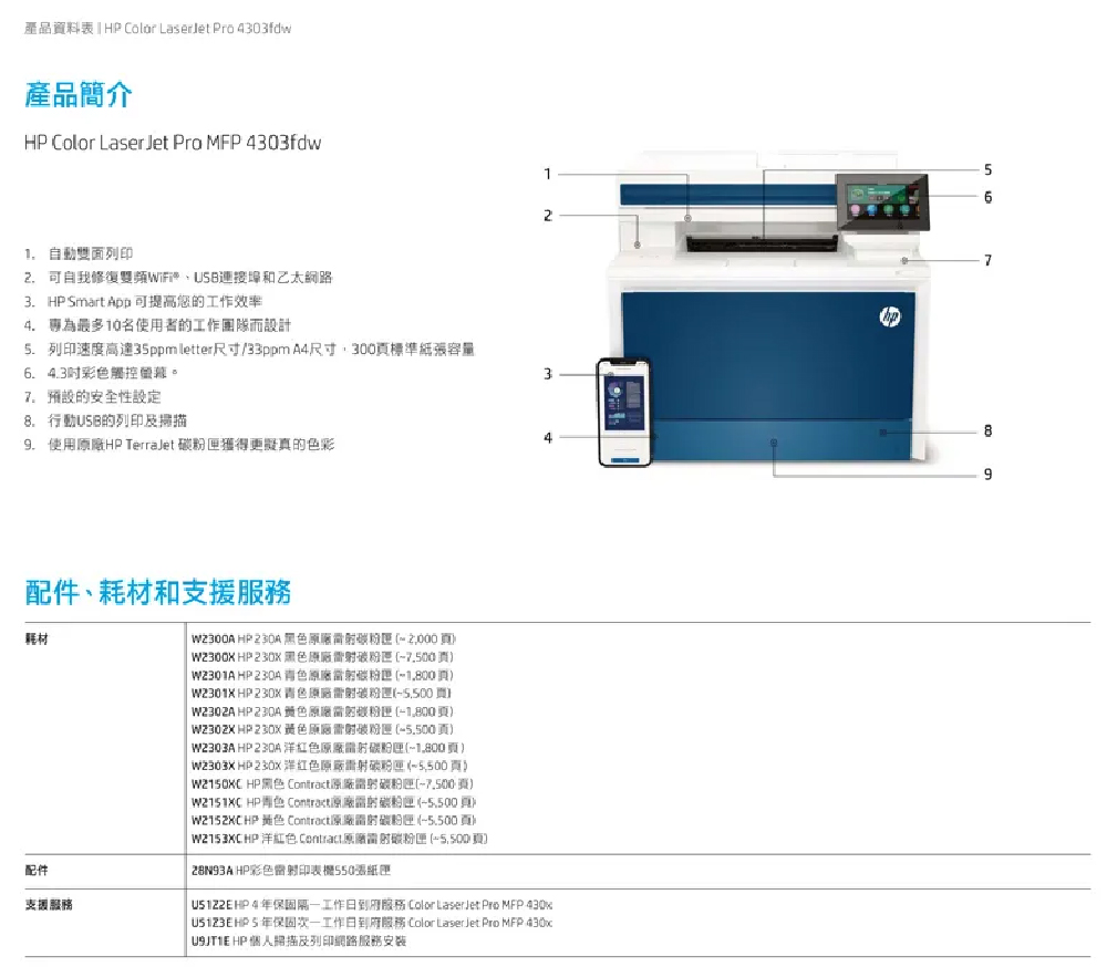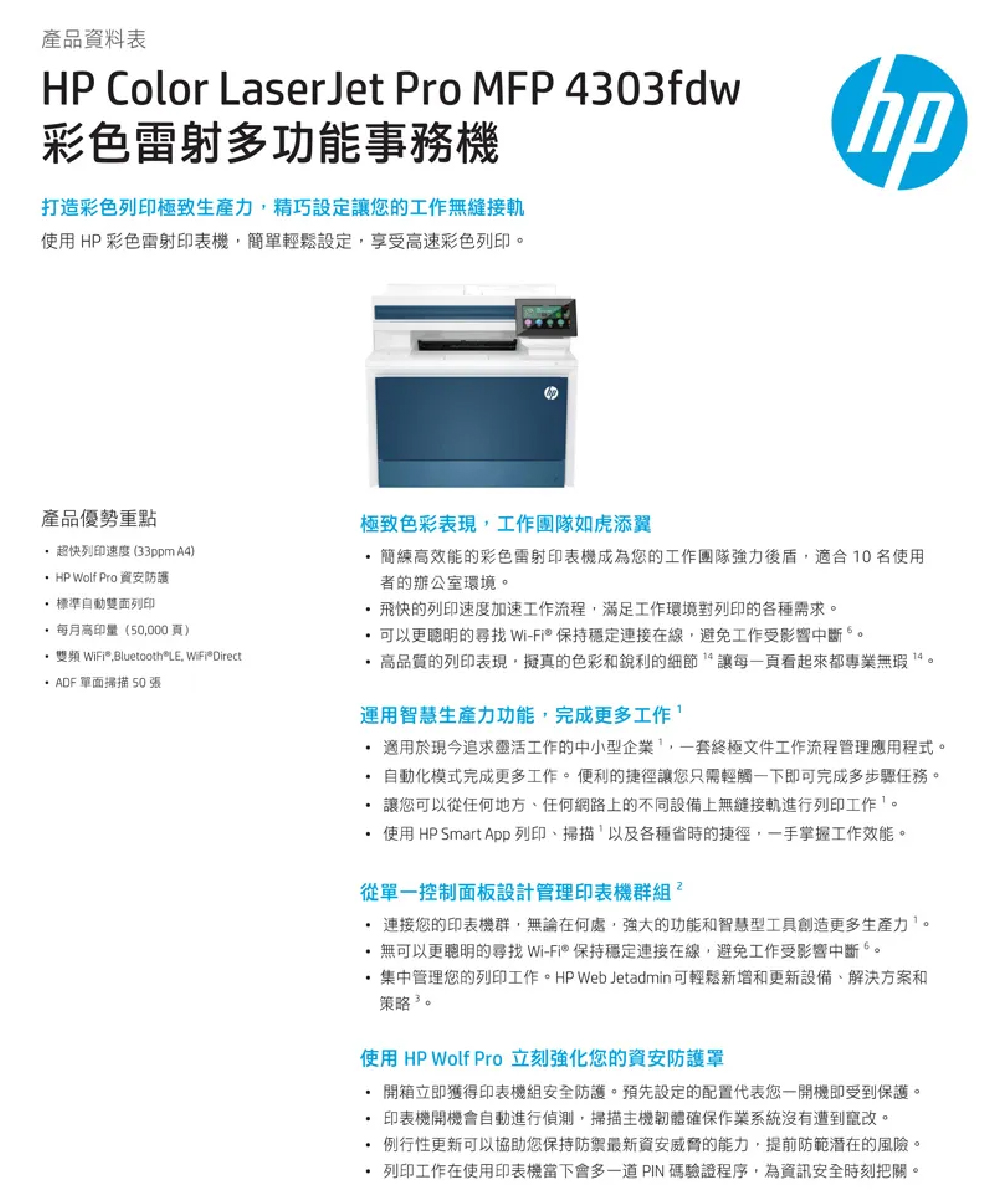 ① 4303fdw 印表機 【含原廠碳粉匣+原廠5年保固】
