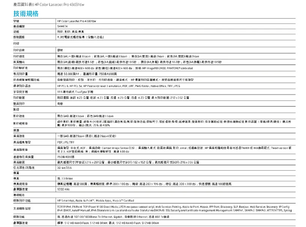 HP Color LaserJet Pro MFP 4303fdw 雙面彩色雷射多功能含傳真事務機