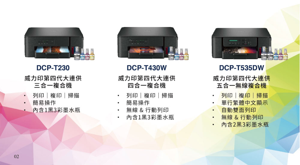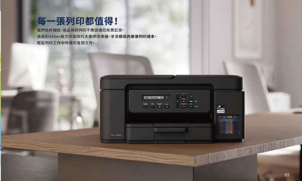 ※ 原廠墨水型號:黑 BTD100BK(寫真墨水 / 不防水)+ 彩 BT100C / M / Y(寫真墨水 / 不防水)
