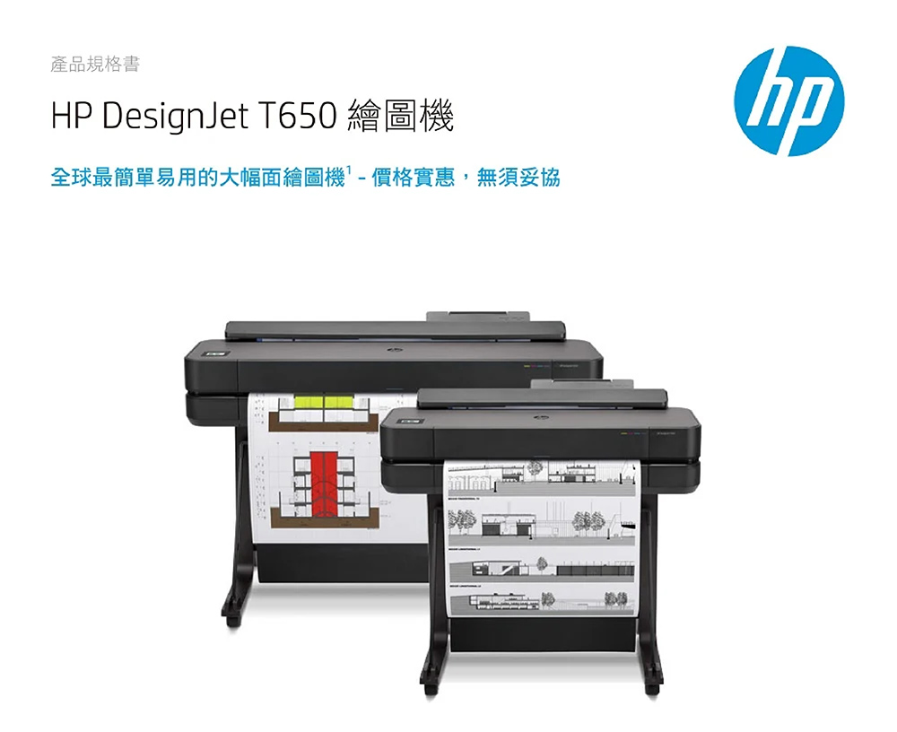 HP DesignJet T650 24吋彩色噴墨 CAD繪圖機