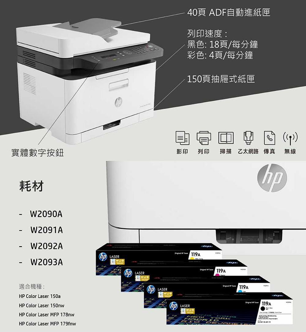 ① 179fnw【含高印量副廠碳粉匣 黑色1000/彩色各700張】