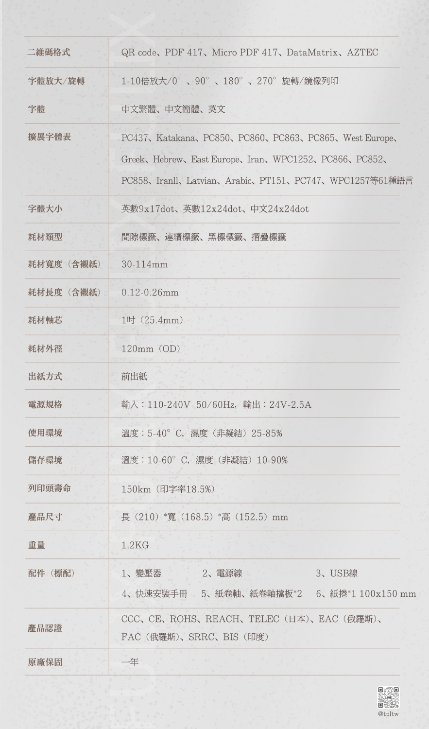① TD-401 熱感標籤機【WiFi+藍芽版】
