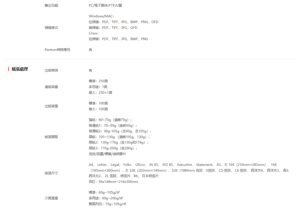 ●支援多種紙(60~163g/m²):厚紙,卡片紙,標籤貼紙,信封,支票,宅配單,透明膠片