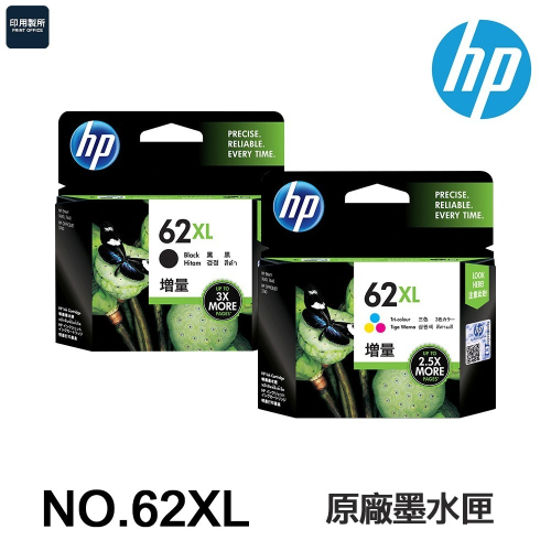 ① HP 62XL 原廠墨水匣 黑色+彩色 1組