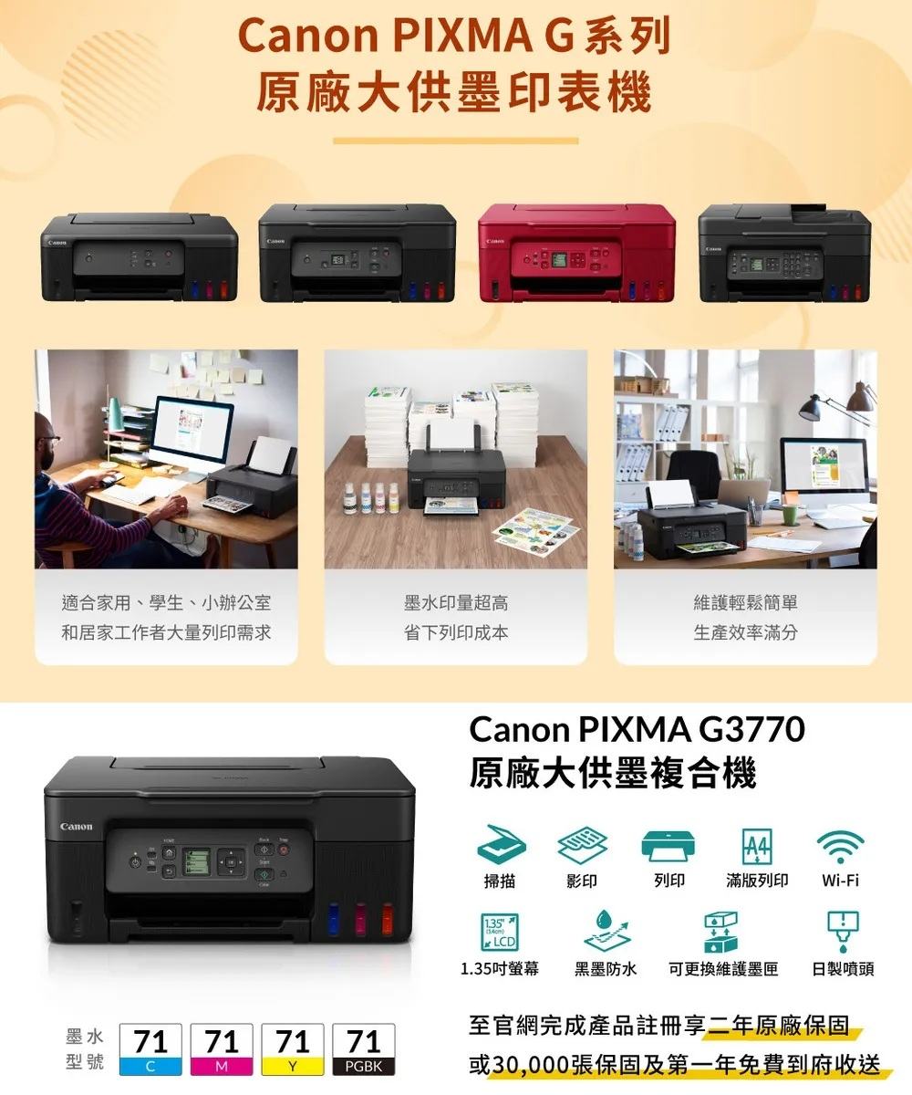 ❸ 加購 GI-71 原廠墨水2組+三年保