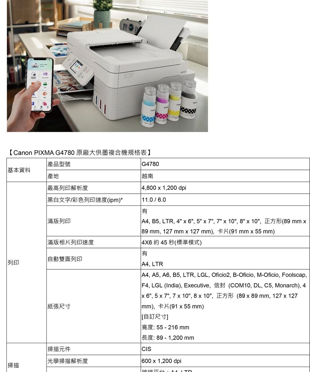 ◆ 滿版列印最大至A4,紙張自訂尺寸最長可達1,200 mm