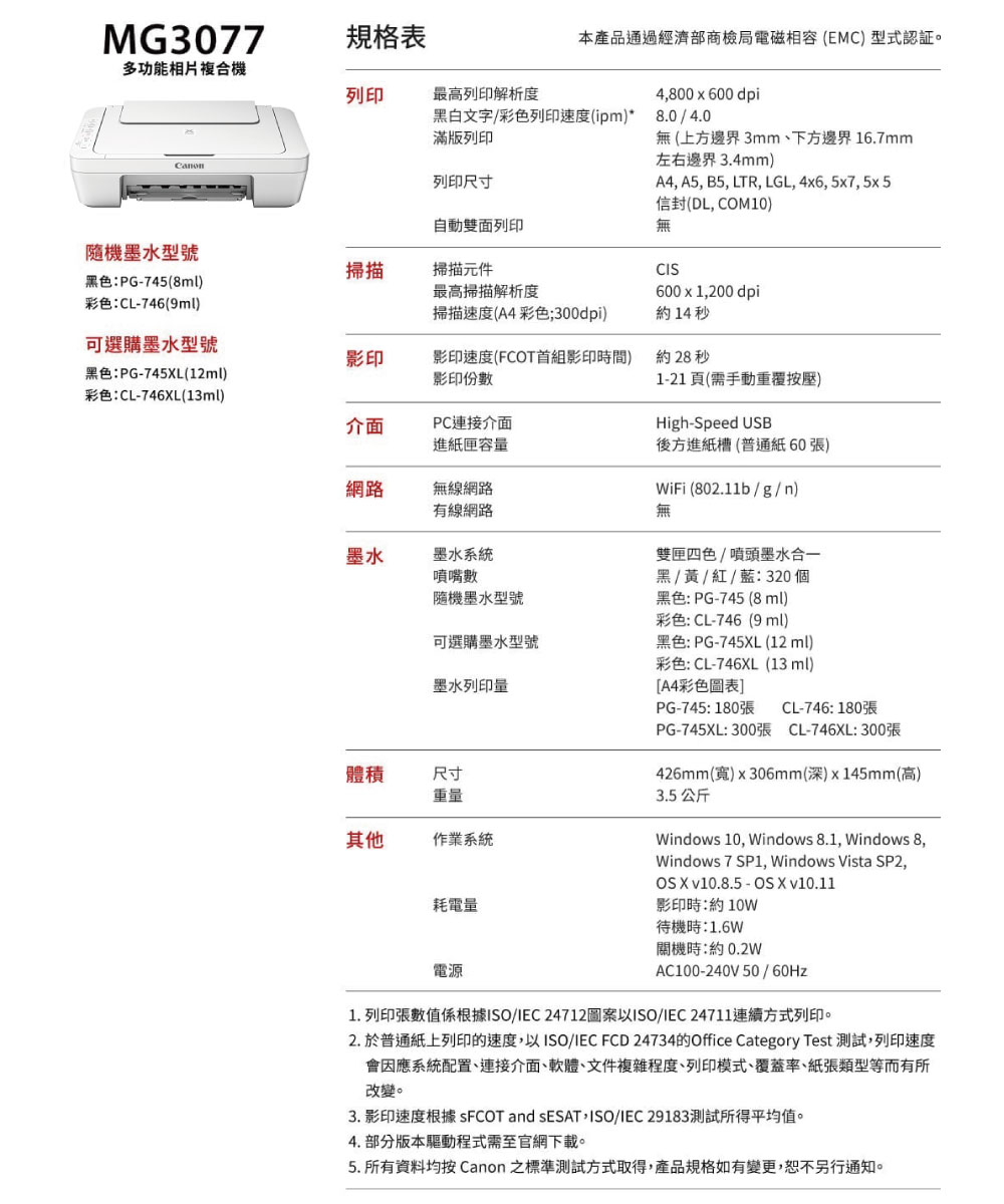 ※ 使用墨水匣型號:PG745(XL)/ CL746(XL)