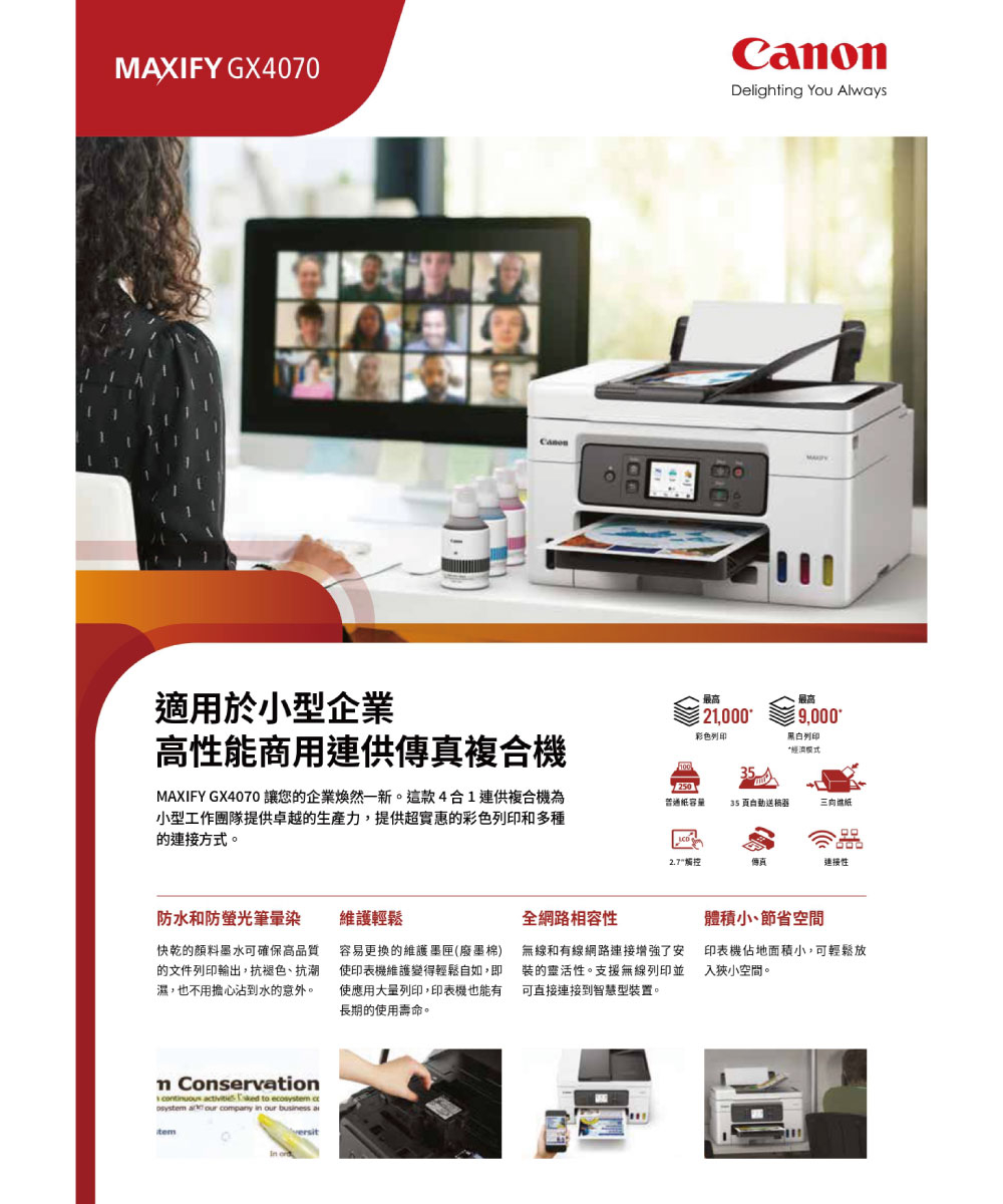 ◆ 超高印量墨水黑白9,000頁,彩色21,000頁