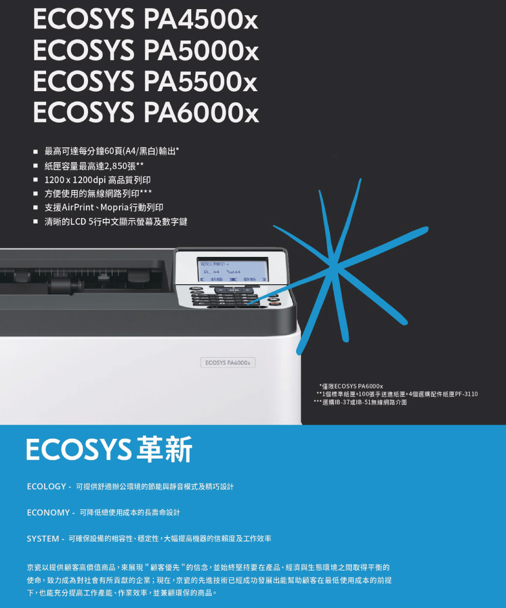 ps:可加購250張擴充紙匣2個(@ $5500) 最大進紙量=650+500=1150張