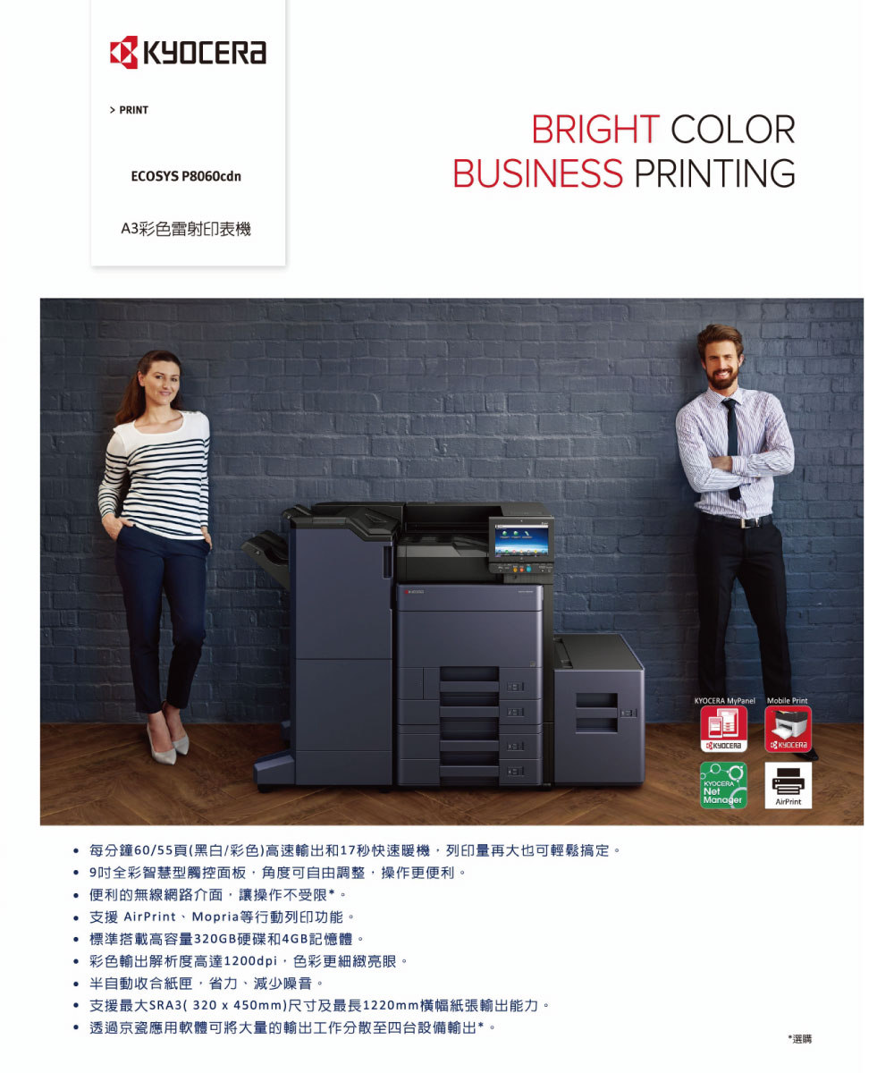 KYOCERA ECOSYS P8060cdn 高速 彩色雷射印表機(無wifi功能)