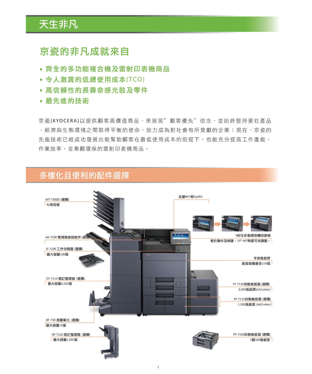 A3 雙面列印|USB|9吋LCD中文彩色觸控面板|隨身碟列印|半自動收合紙匣