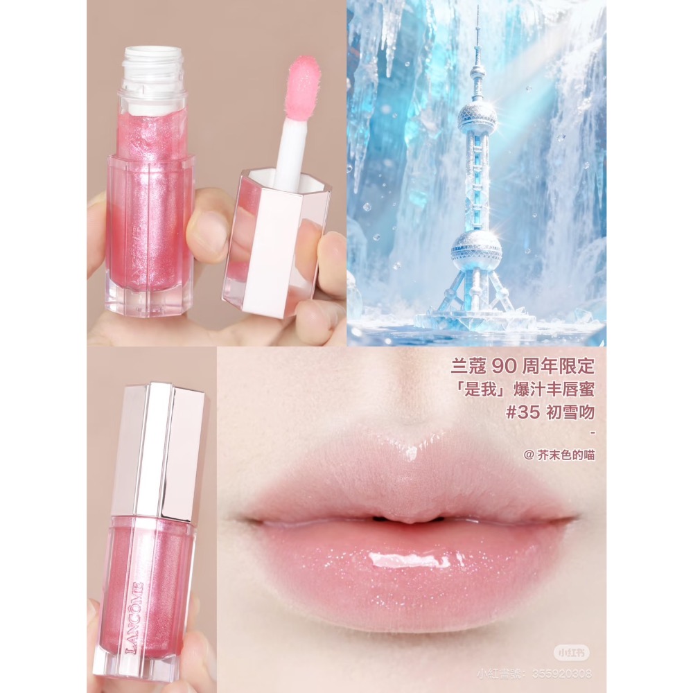 這支唇蜜真的美到犯規!它不是那種黏膩的油光,而是**「冰糖水光」**的乾淨質地,透明粉底色中帶有細碎的冰晶閃。上嘴是會發光的果凍濾鏡,單擦顯嫩,疊擦超仙!