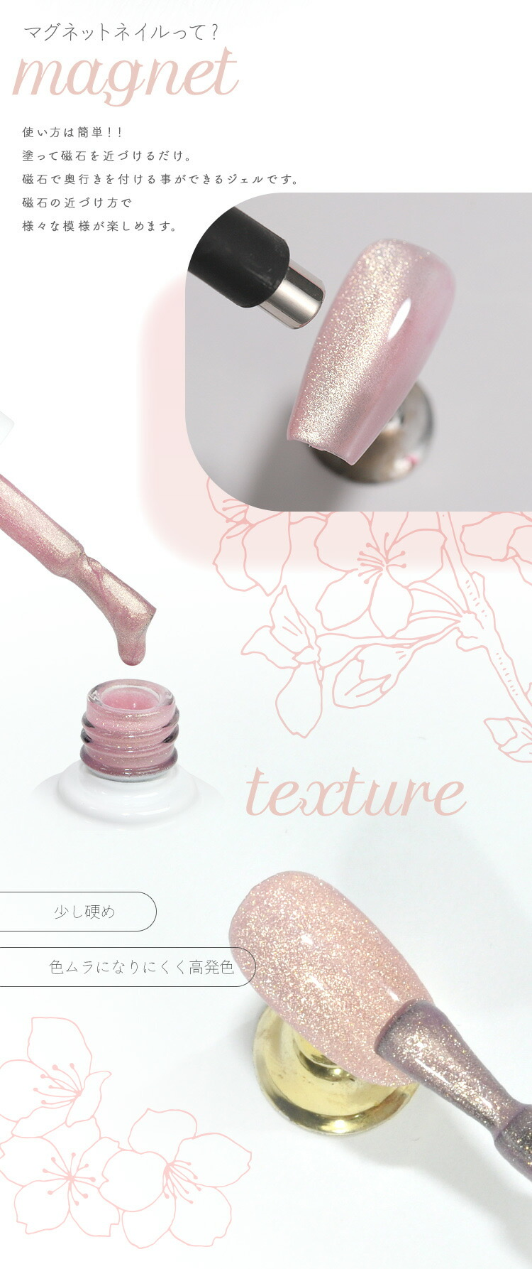 可使用磁鐵增加貓眼。根據使用磁鐵的方式,可以享受各種圖案。