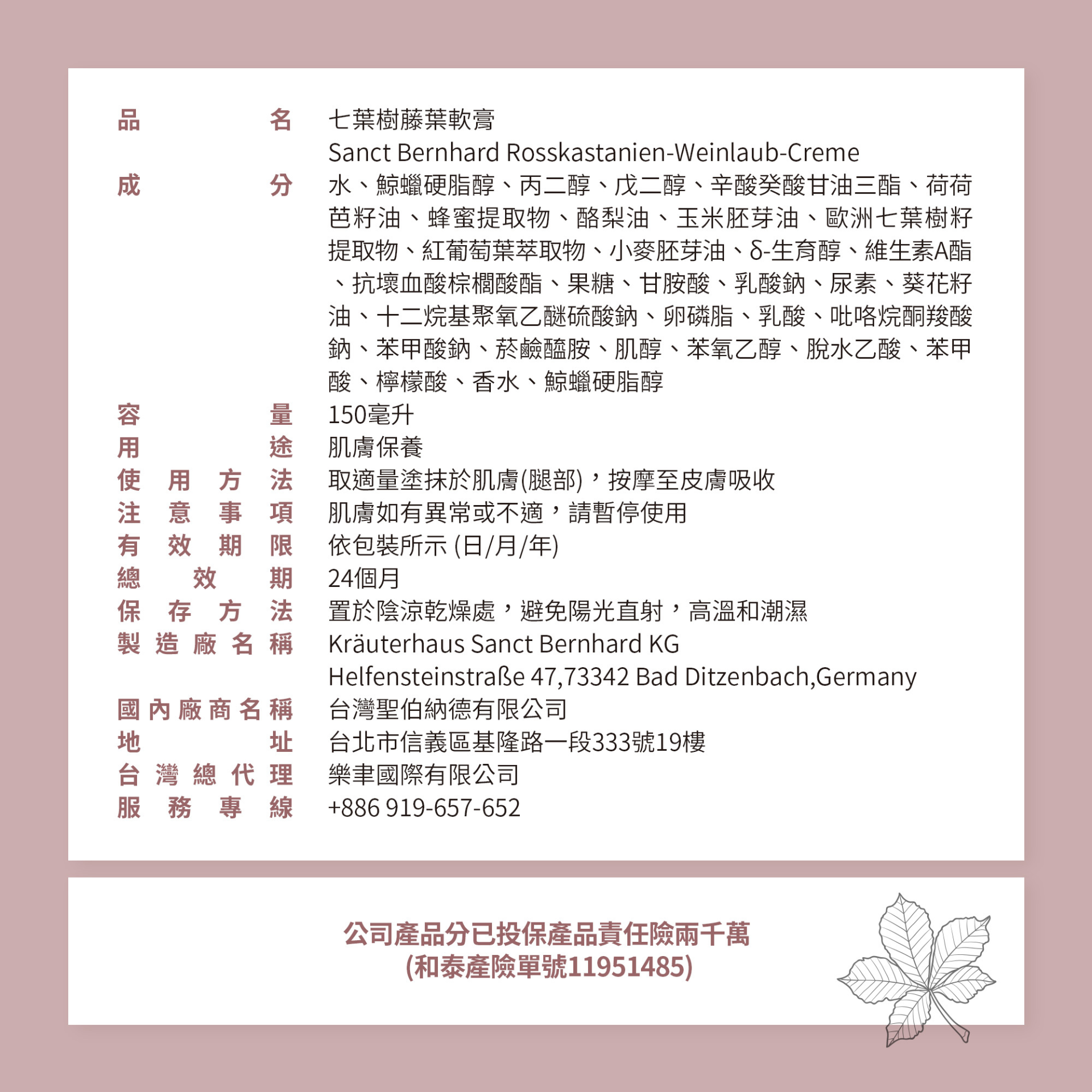 原廠 聖伯納德Sanct Bernhard 七葉樹藤葉軟膏(單條150ml) 久站舒緩 ❤️ㄚ比小鼻❤️