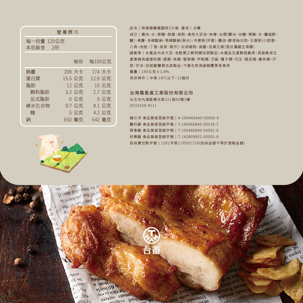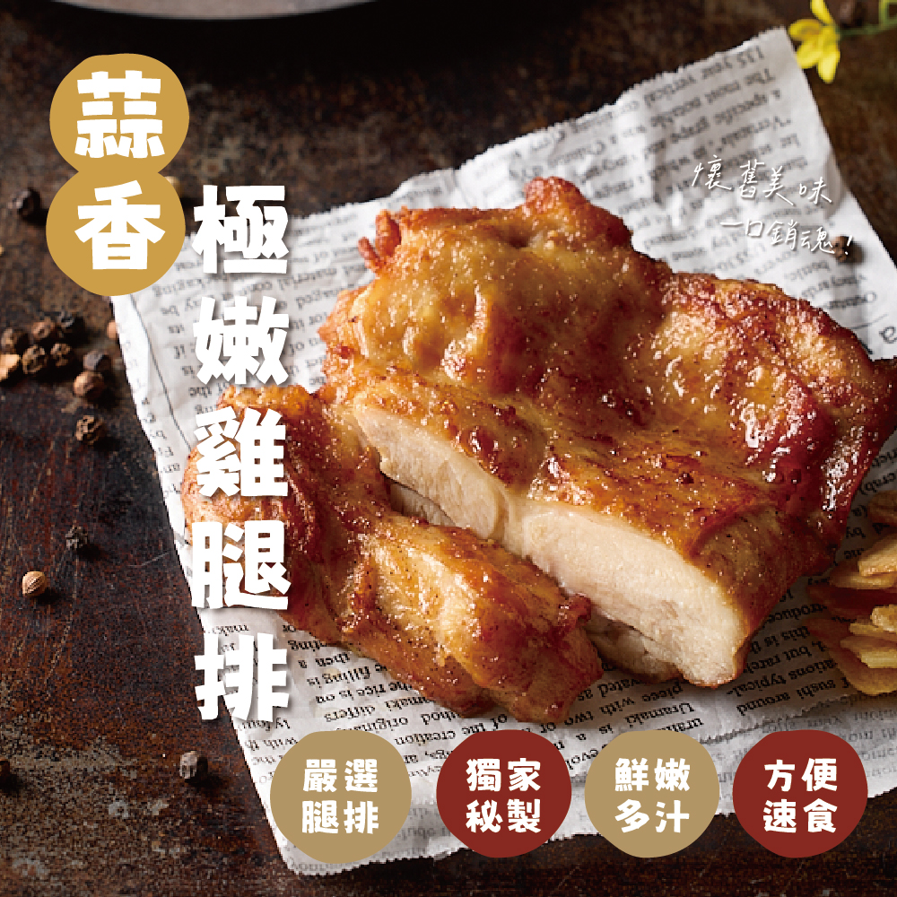 【醃漬】蒜香極嫩雞腿排2片裝(240g/包)蒜味濃郁 超嫩雞腿排 雞排 氣炸 香煎
