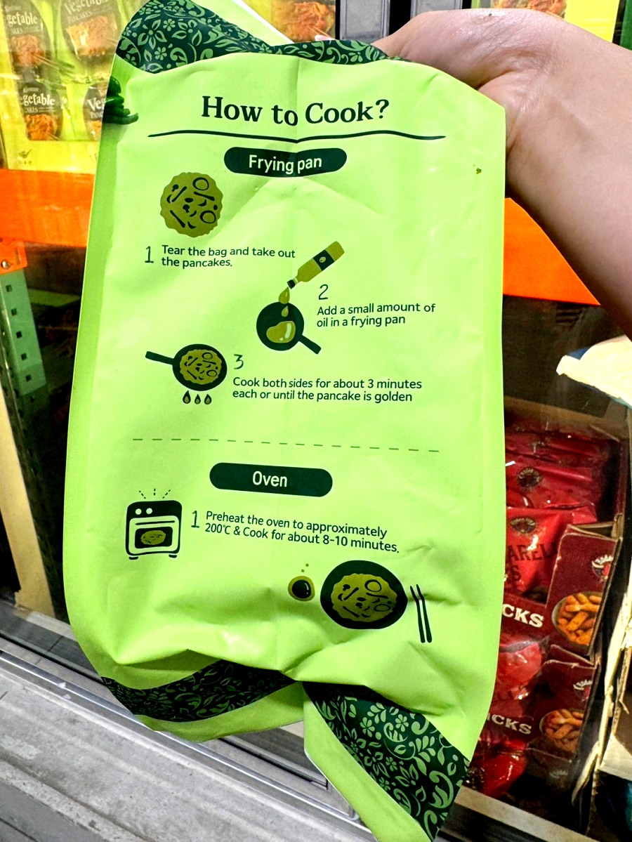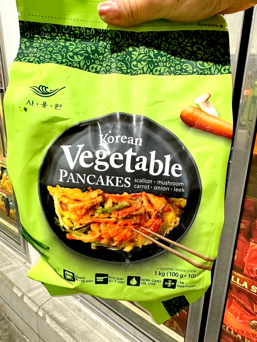 烤箱加熱:烤箱預熱至約204℃,將冷凍韓式蔬菜煎餅放入烤箱中加熱約8-10分鐘,即可取出享用。