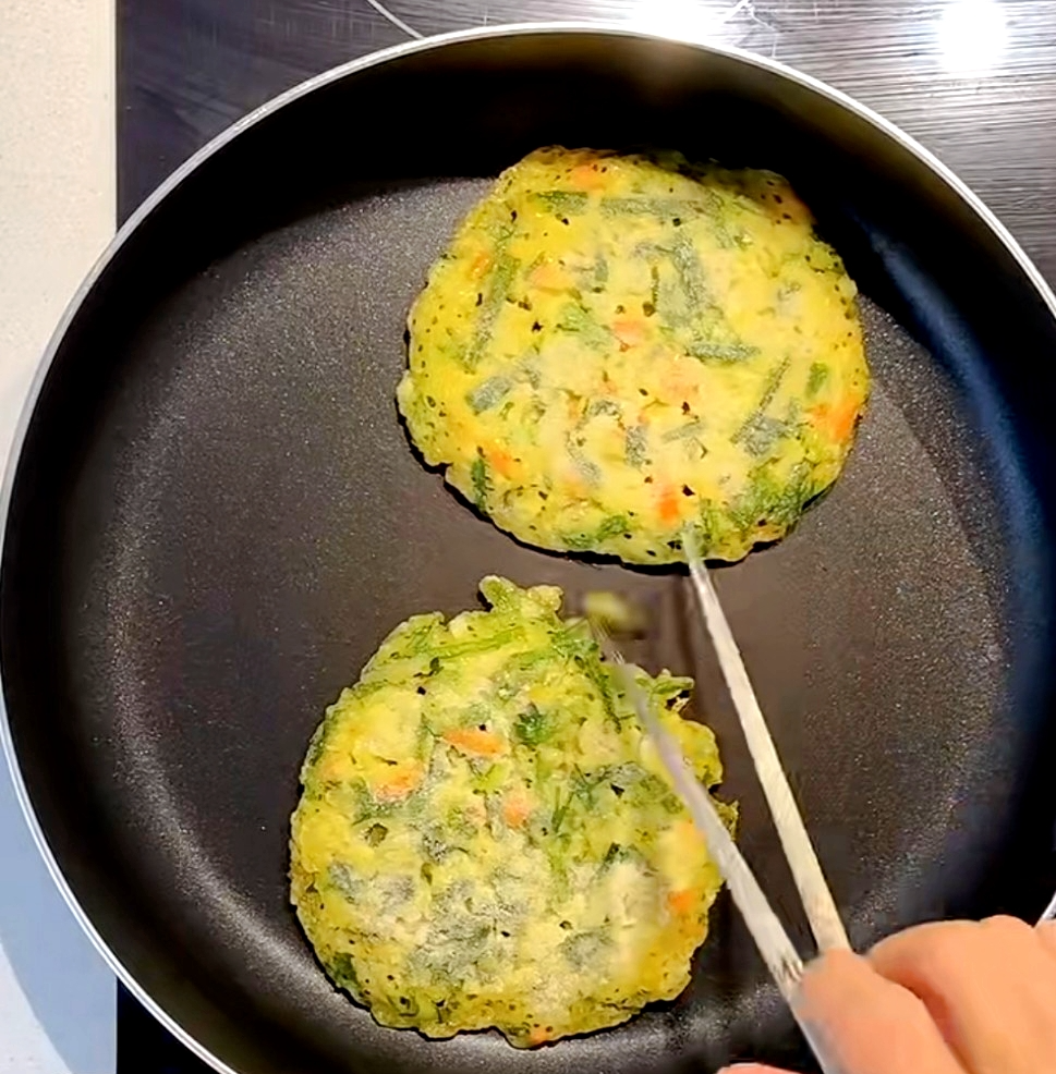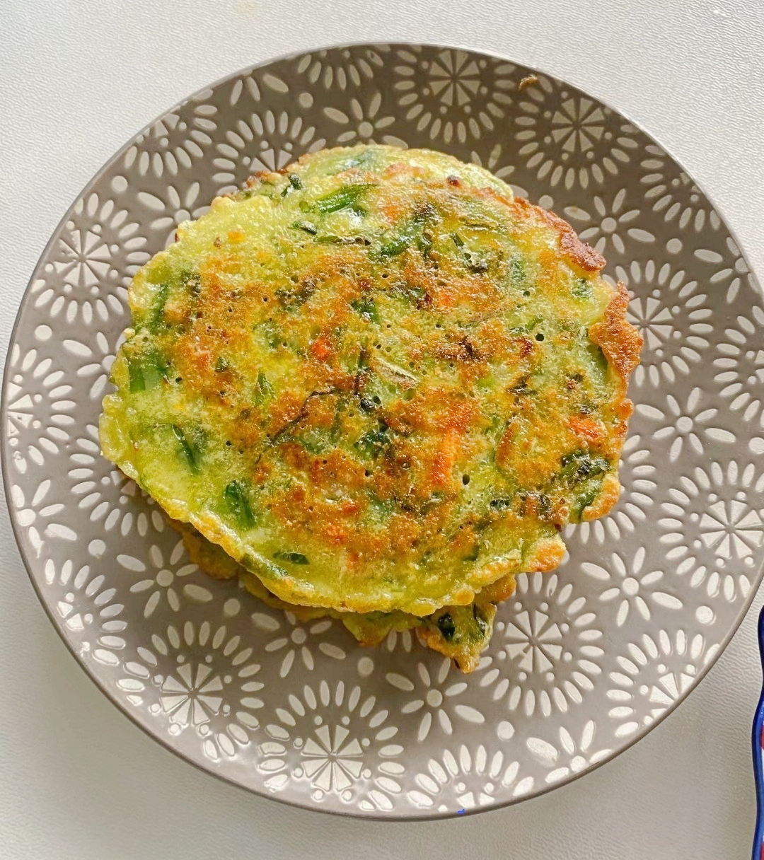 煎鍋加熱:煎鍋中加入少許的油,將冷凍韓式蔬菜煎餅從包裝中取出,放入煎鍋中加熱約3分鐘,直到煎至表面金黃色即可起鍋享用。