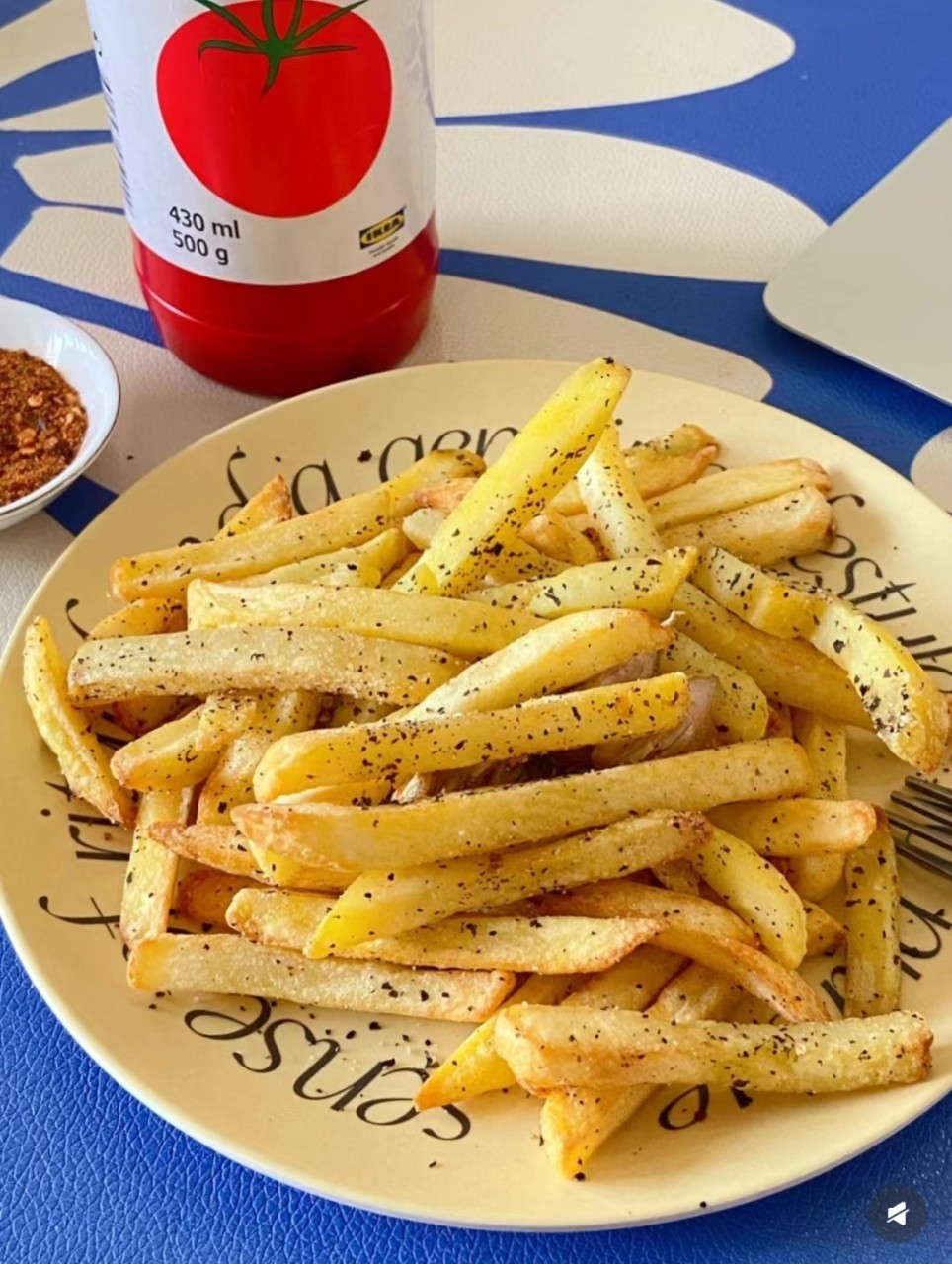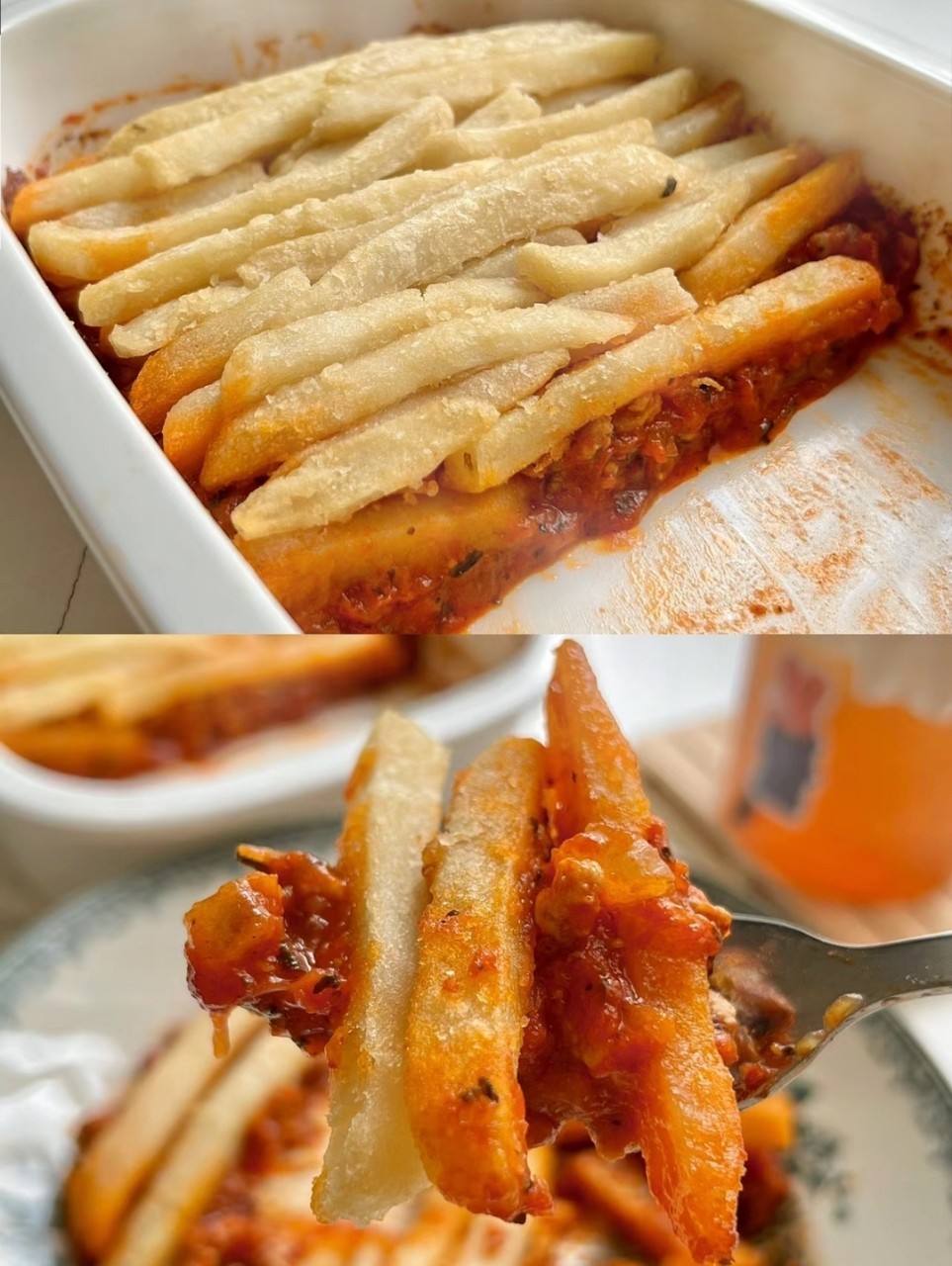 2. 將薯條平舖於烘焙紙上。