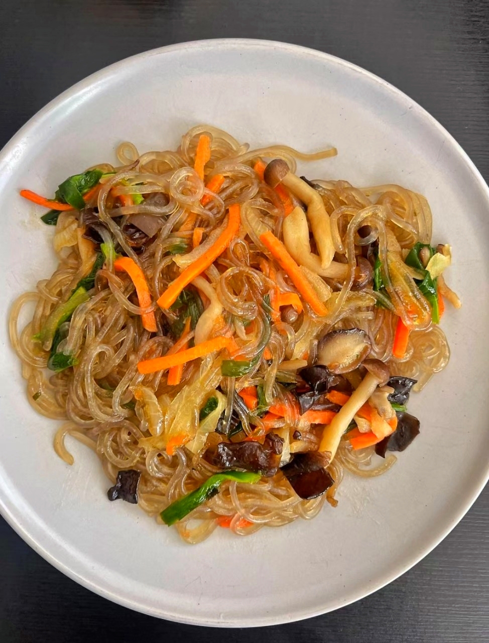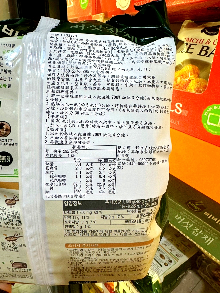 粉絲、蔬菜、醬油、糖、玉米 糖漿、芝麻油、水、青 蔥、玉米油、大蒜、酵母萃取物、調味劑、蔗糖糖漿、黑胡椒粉。