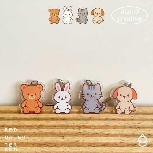 紅女兒〔玩偶動物〕貓咪吊飾 兔子吊飾 狗狗吊飾 熊熊吊飾 娃娃吊飾 狗狗鑰匙圈 壓克力鑰匙圈 泰迪熊吊飾 吊飾 可愛吊飾