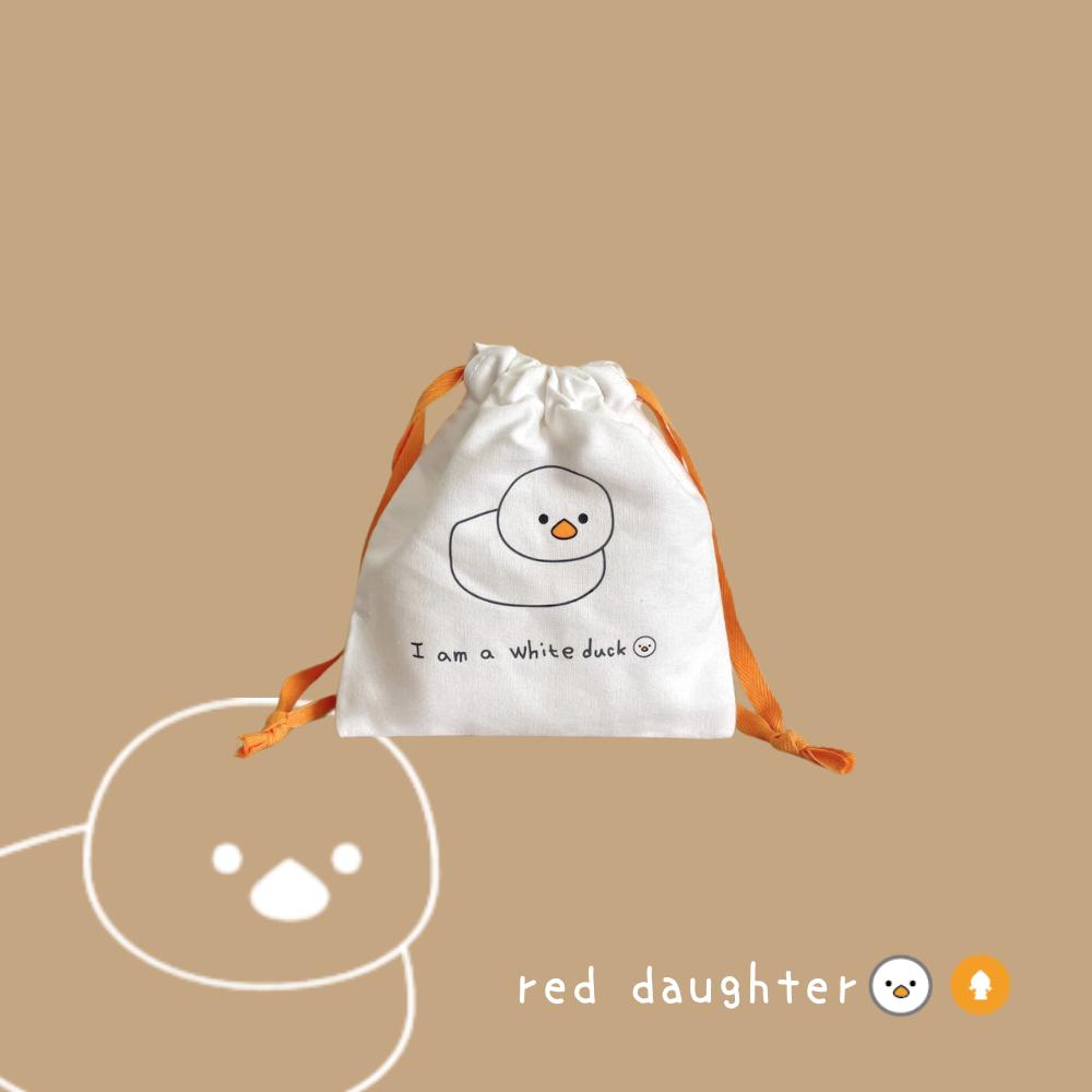 紅女兒〔文創小白鴨〕可愛束口袋 小束口袋 小物收納包 收納袋 束口包 束口收納袋 束口袋 束口袋小 小收納袋 帆布束口袋