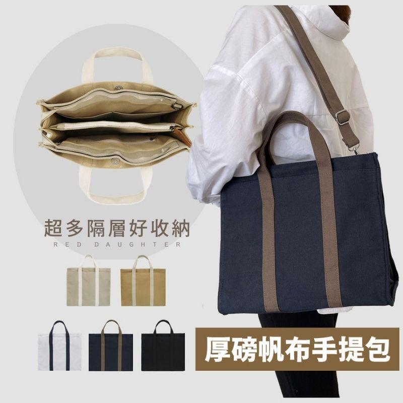 紅女兒〔多隔層厚帆布〕帆布托特包 手提包 帆布包 帆布手提包 帆布手提袋 拉鍊帆布包 大帆布包 厚磅帆布包 a4帆布包