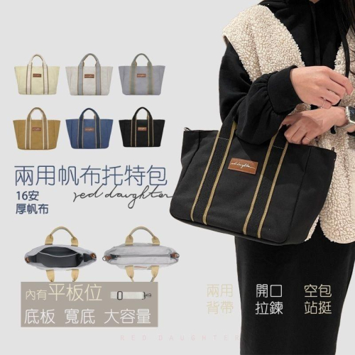 《獨家訂製》撞色兩用帆布托特包 - 有一個大隔層內袋(可裝IPAD10.2吋/a5筆記書籍) - 16安厚帆布(附底板)可「空包站挺」 - 開口拉鍊,隨時出門安心 - 附可調長背袋,想手提,肩背/斜背都可以~ - 寬底大容量 可同時裝便當再配一個水壺! 可裝 長夾/a5書/平板/摺疊傘/水壺/化妝包/便當 這款實品質感超好的 這次新布料廠的用料 單層16安帆布就能空包站挺 精緻logo升級燙銀皮革布標 整個包包質感又更好了 ------------------------------------------------------------------------- 材質:16安滌棉厚帆布(空包站挺) 尺寸:高22.5cm 上寬40cm 下寬28cm 底寬12.5cm 手提高10cm 可調可拆長背帶64~124cm 開口:拉鍊式 底部:附可拆底板 內部:一隔層型內袋(可裝ipad10.2吋/a5筆記本) 包重:約493g ■拍攝器材.光線角度.每台顯示器不同,存在些許色差,以實品為主 ■因手工製作而有顏色.尺寸些許的落差,1-3cm誤差屬正常範圍 ---------------------------------------------------------------------------- ■台灣出貨 隨貨附發票 ■ODM設計 大陸製造 ■商品皆為實體拍攝,品質嚴格把關 ■更多照片可以關注IG : red_daughter_ ---------------------------------------------------------------------------- https://s-cf-tw.shopeesz.com/file/tw-11134208-7r98z-ll3ai7aq1ujl0c