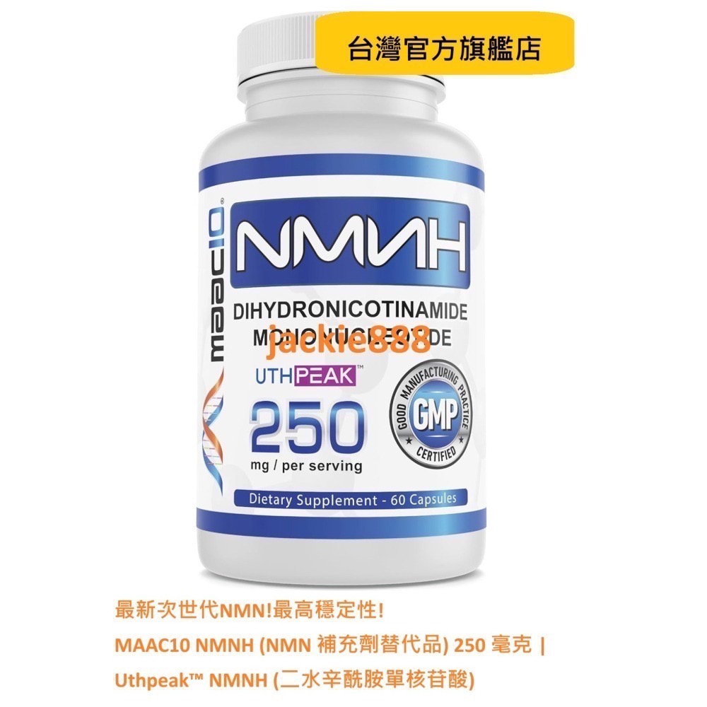 250毫克NMNH服務-每瓶MAAC10 NMNH配有60粒易於吞嚥的膠囊。 每份是2 x 125毫克的二氫煙醯胺單核苷酸(NMNH)。