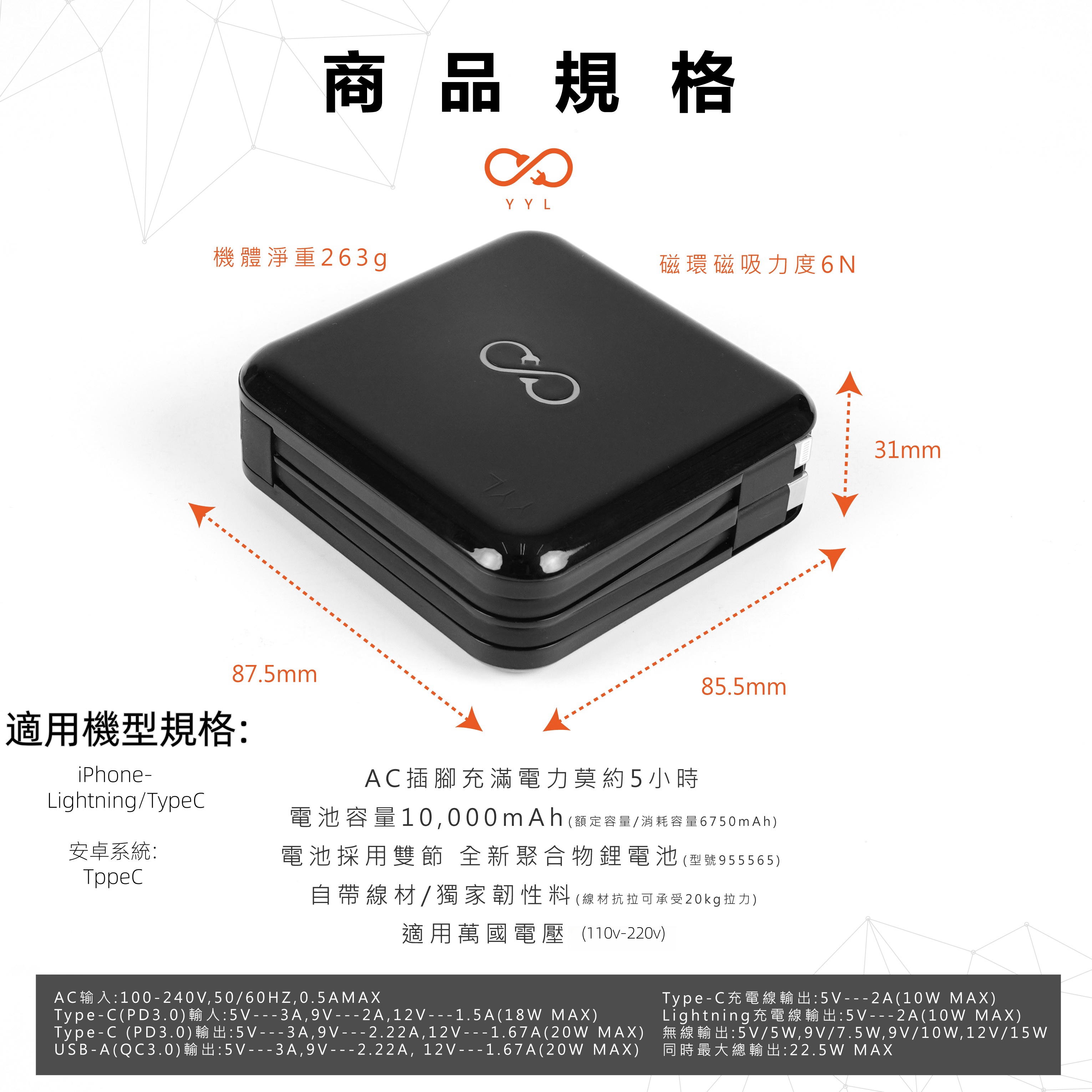 自帶雙線 滿足各種充電需求(雙頭TypeC、TypeC-Lightning各一)