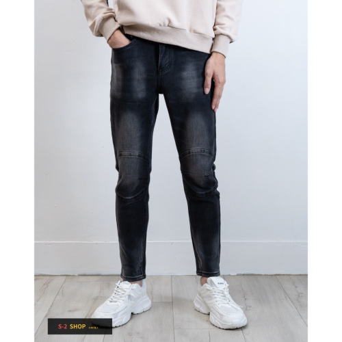 高磅膝蓋立體造型 水洗黑褲立體刷白 彈力牛仔長褲
