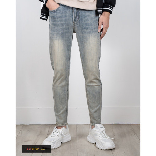 微漸層 復古刷黃的魅力 素面彈力牛仔長褲