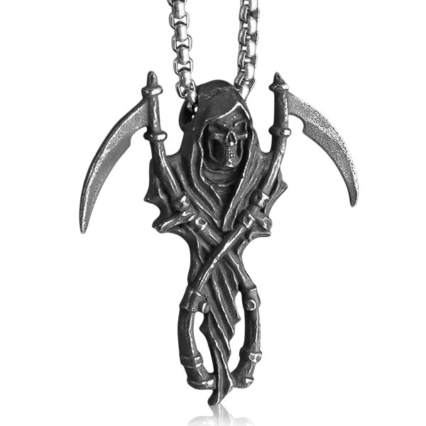 《 QBOX 》FASHION 飾品【CBP8-812】 精緻個性復古骷顱頭死神鐮刀鑄造鈦鋼墬子項鍊/掛飾