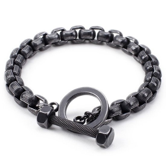 《 QBOX 》FASHION 飾品【BK110097】 精緻個性歐美復古黑健身啞鈴環扣鑄造鈦鋼手鍊/手環